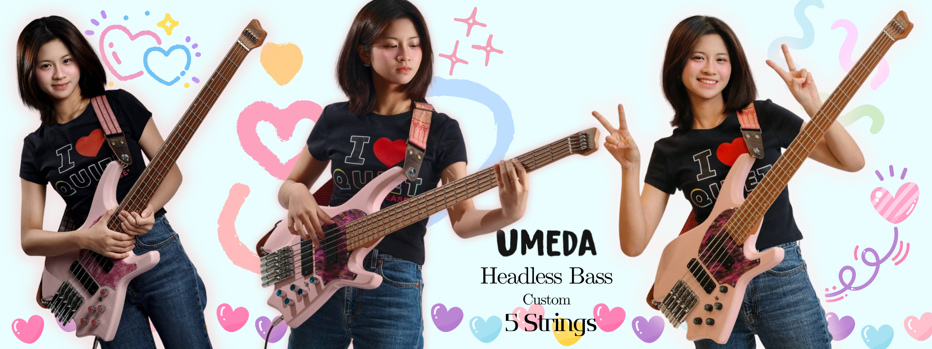 UmedaCustomBlackPinkActiveHeadlessBass5Strings
