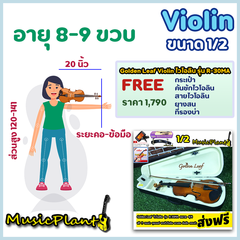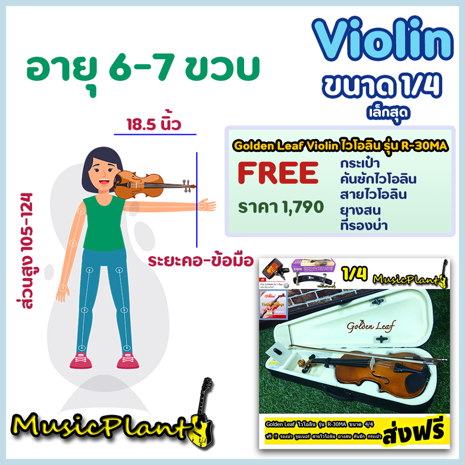 Golden Leaf Violin ไวโอลิน รุ่น R-30MA มีหลายขนาด เลือกไซส์ได้ พร้อม กระเป๋า ที่รองบ่า คันชักไวโอลิน ยางสน สายไวโอลิน