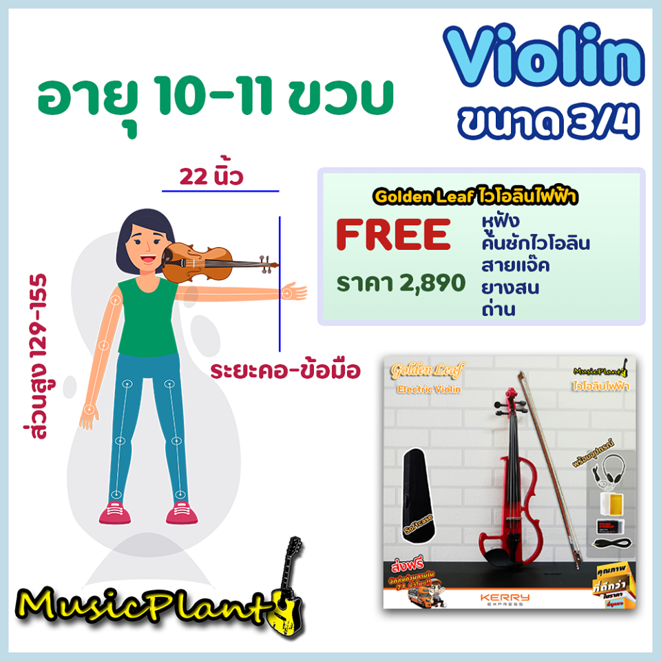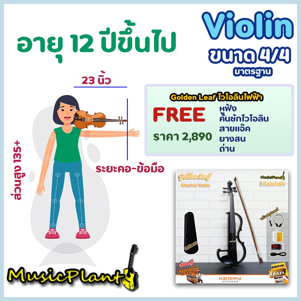 - Golden Leaf ไวโอลินไฟฟ้า ขนาด 4/4 พร้อม คันชัก หูฟัง สายแจ็ค ยางสน และ ถ่าน