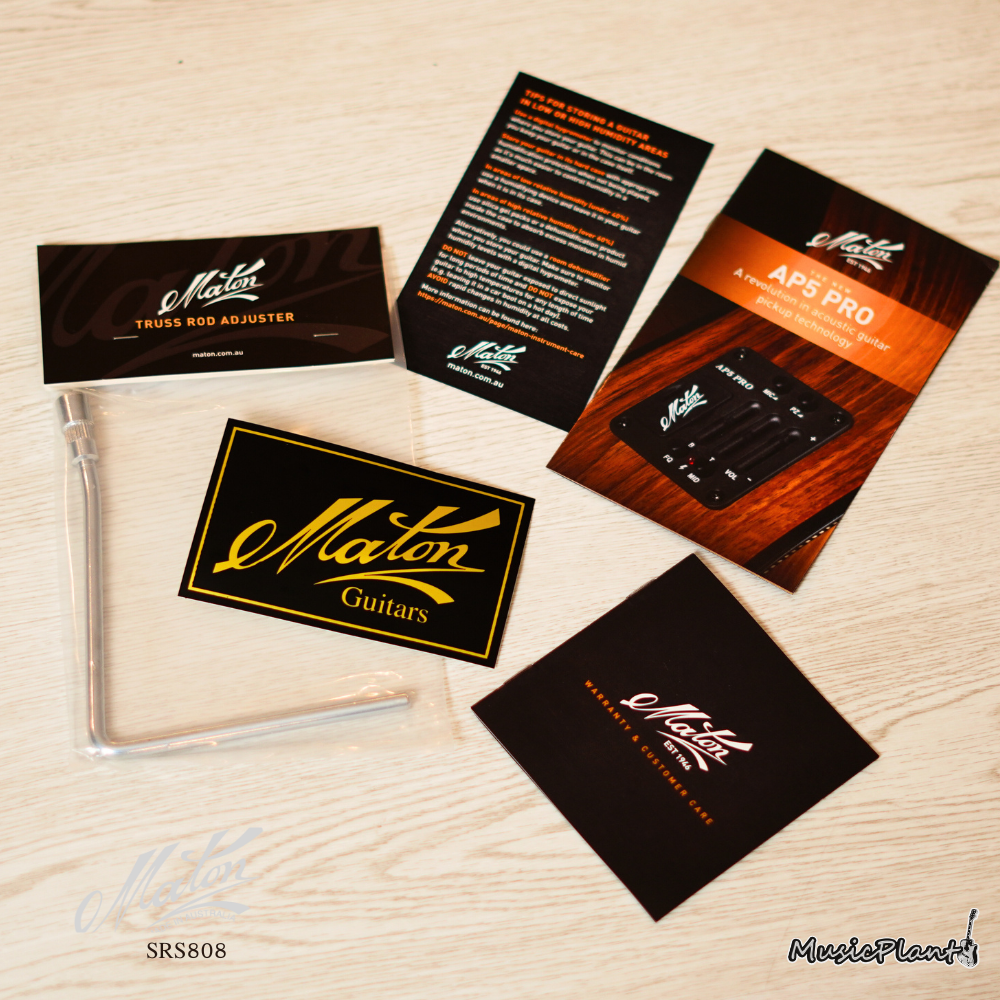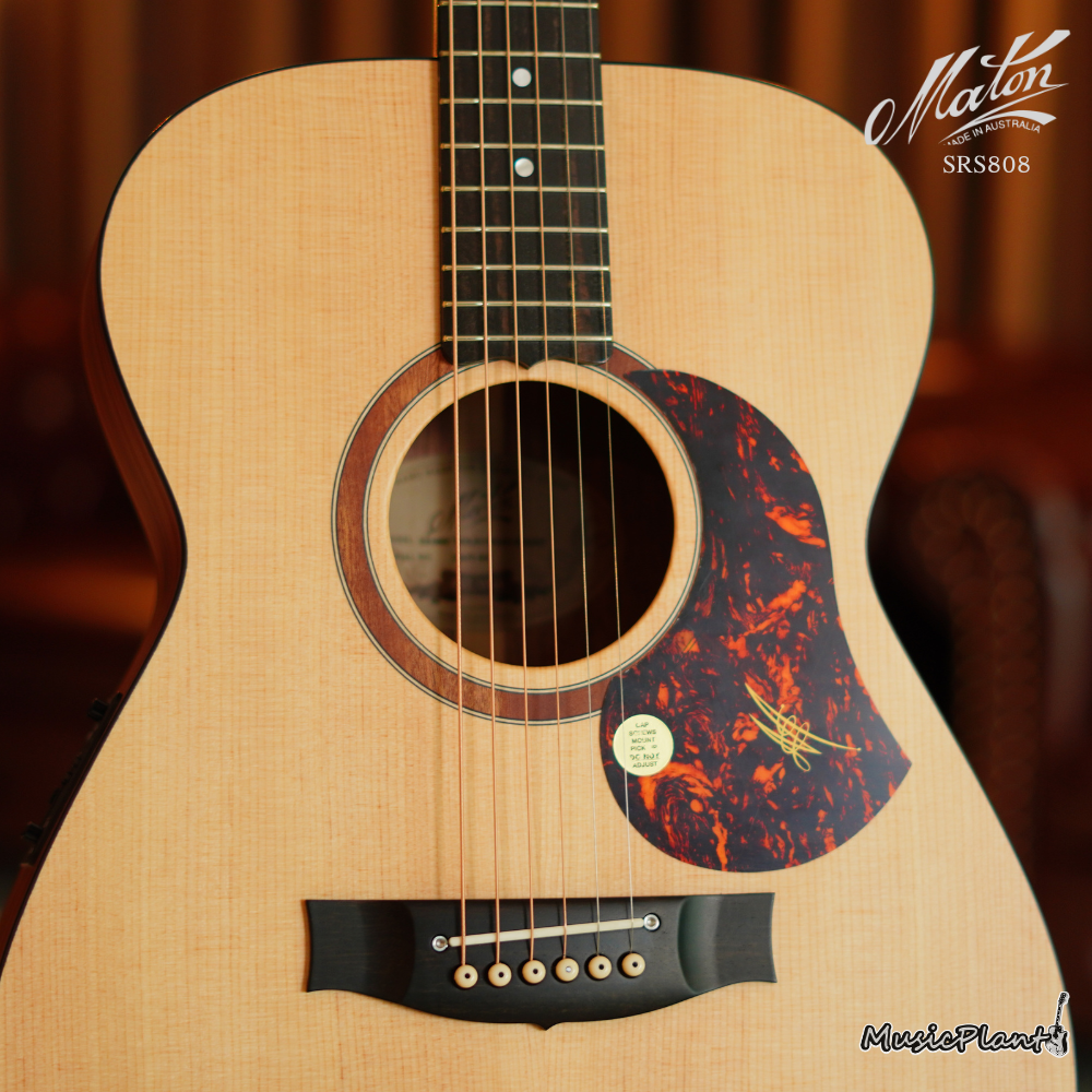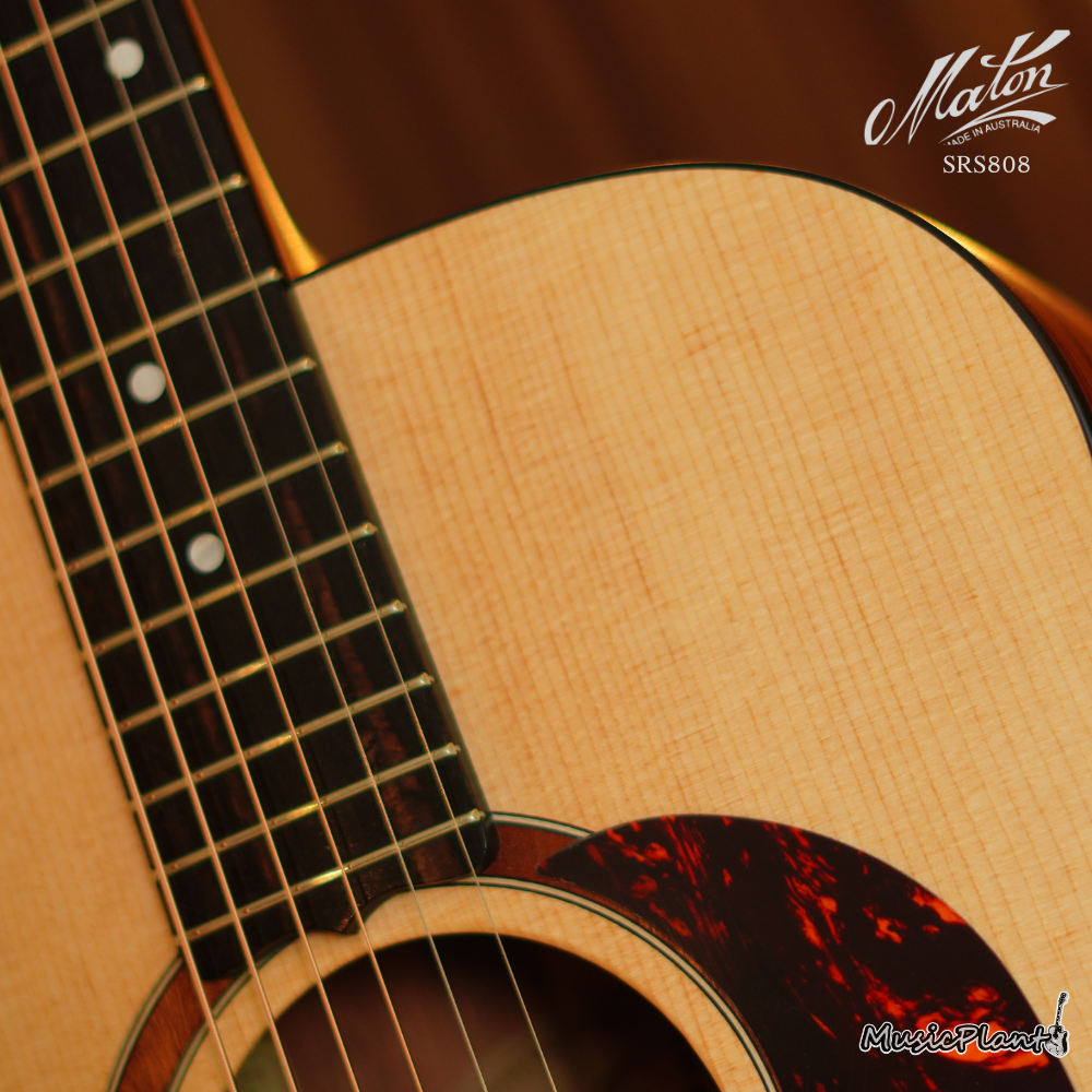 The Maton SRS808 incorporates solid Blackwood back and sides and a Spruce top.
