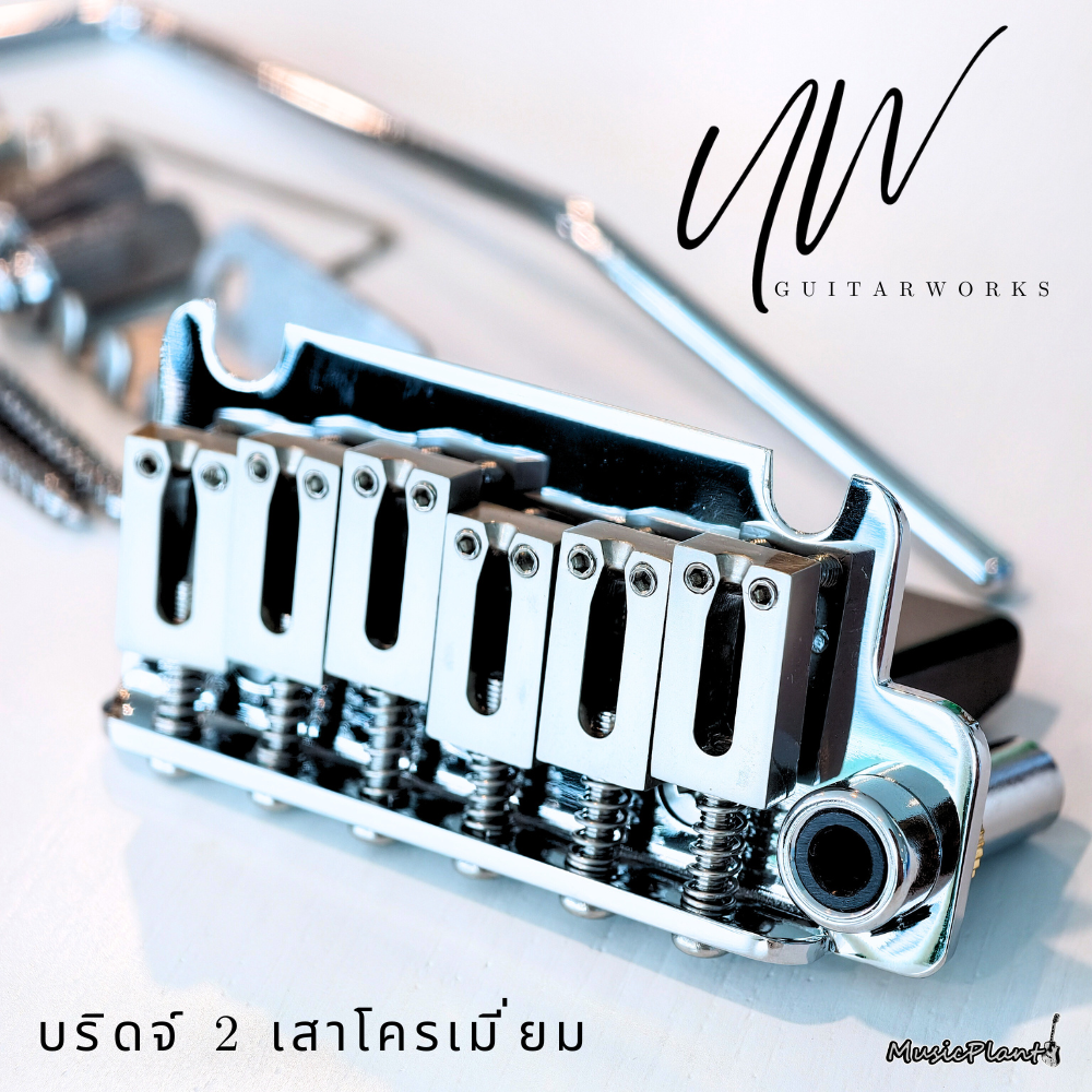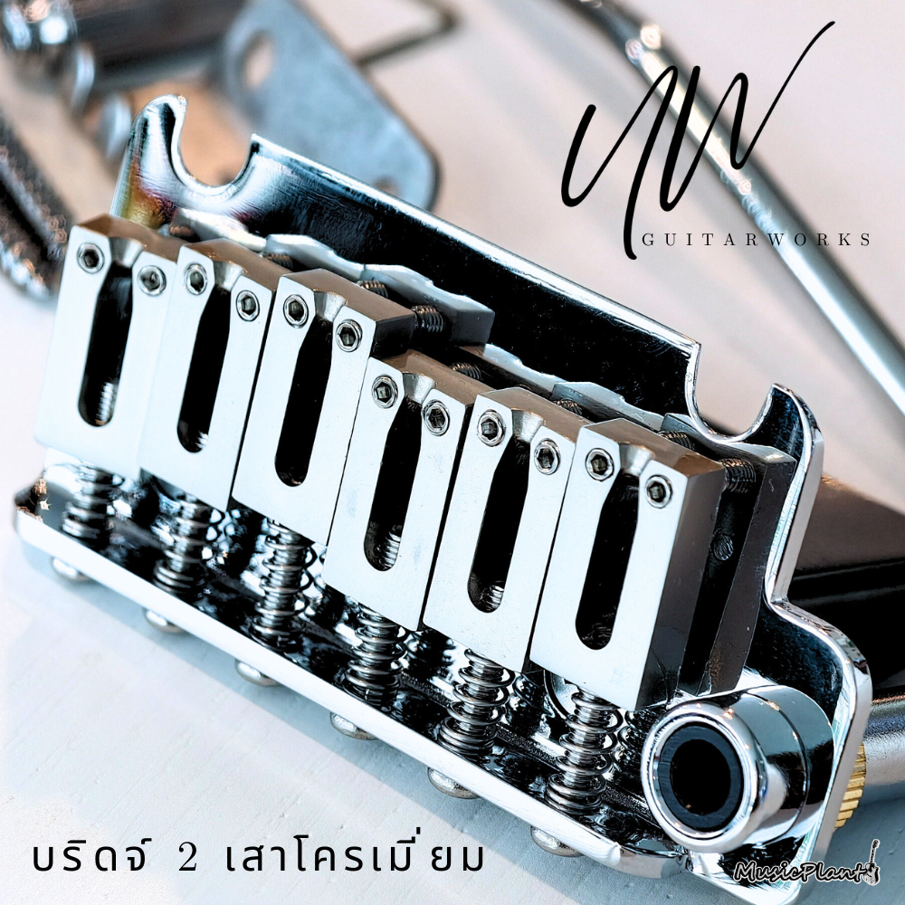 UW Tremolo Chrome Bridgeบริดจ์ 2 เสาSaddle เป็นโครเมี่ยม Chrome